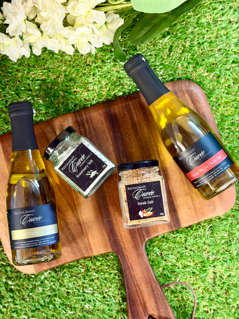 Head Chef Chad Pridue and his talented team have created a range of house made products for purchase. Used in many of the dishes served on site at Restaurant Cuvee, now you can create your own delicious meals at home.